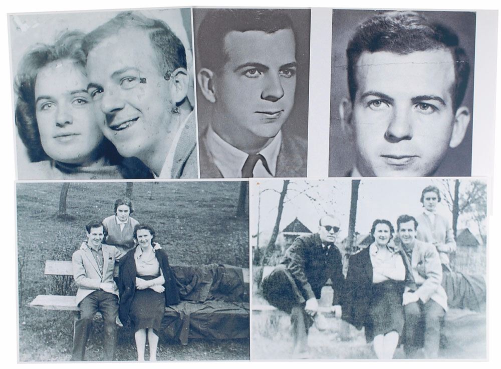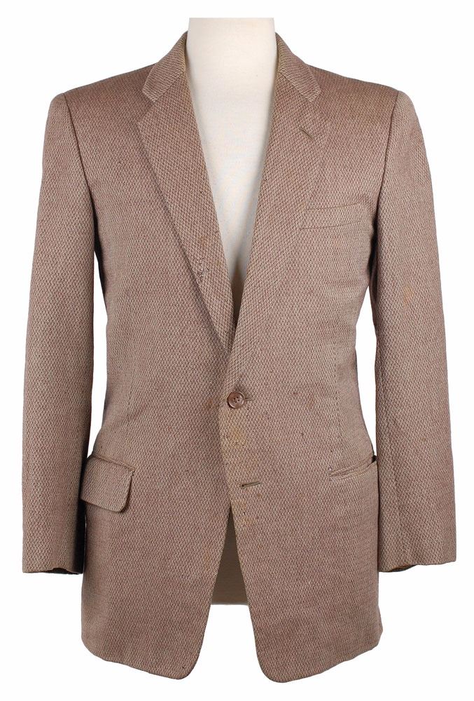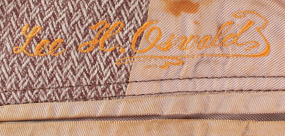 Oswald’s personally-owned and -worn tweed jacket made by Kawashima Tailors of Yokohama, Japan, embroidered with his name above the inner pocket, “Lee H. Oswald.” In fine condition, with some scattered staining inside. Accompanied by a letter of authenticity from his older brother, Robert L. Oswald, which states that Lee bought the jacket in 1957 or 1958 while stationed in Japan, and subsequently brought it with him to Russia. Additionally accompanied by six images of Lee wearing the jacket: four while in Russia with his wife, Marina and family and two single portraits of him. A generously worn piece of Oswald clothing, bolstered by photo evidence and impeccable lineage.
