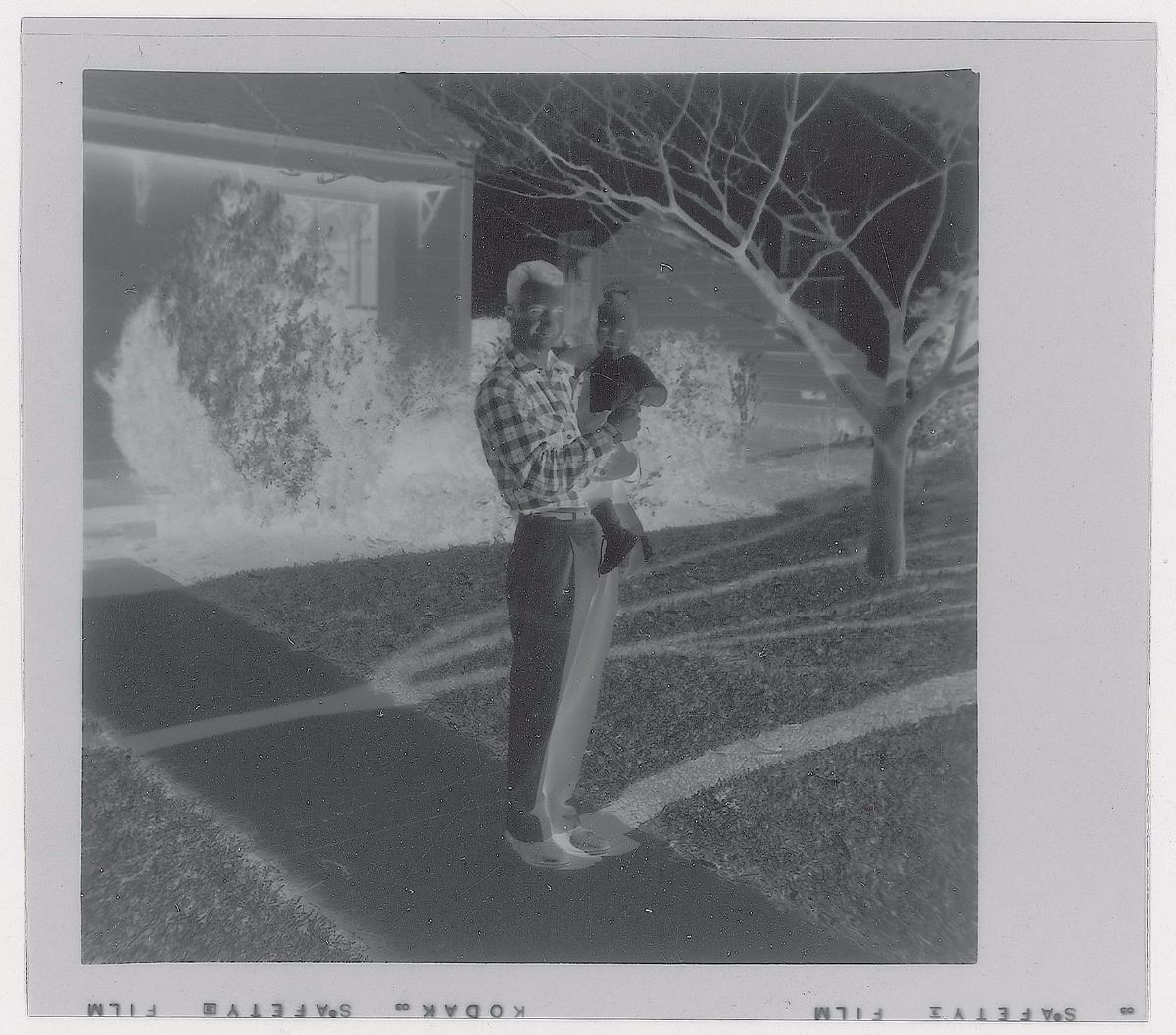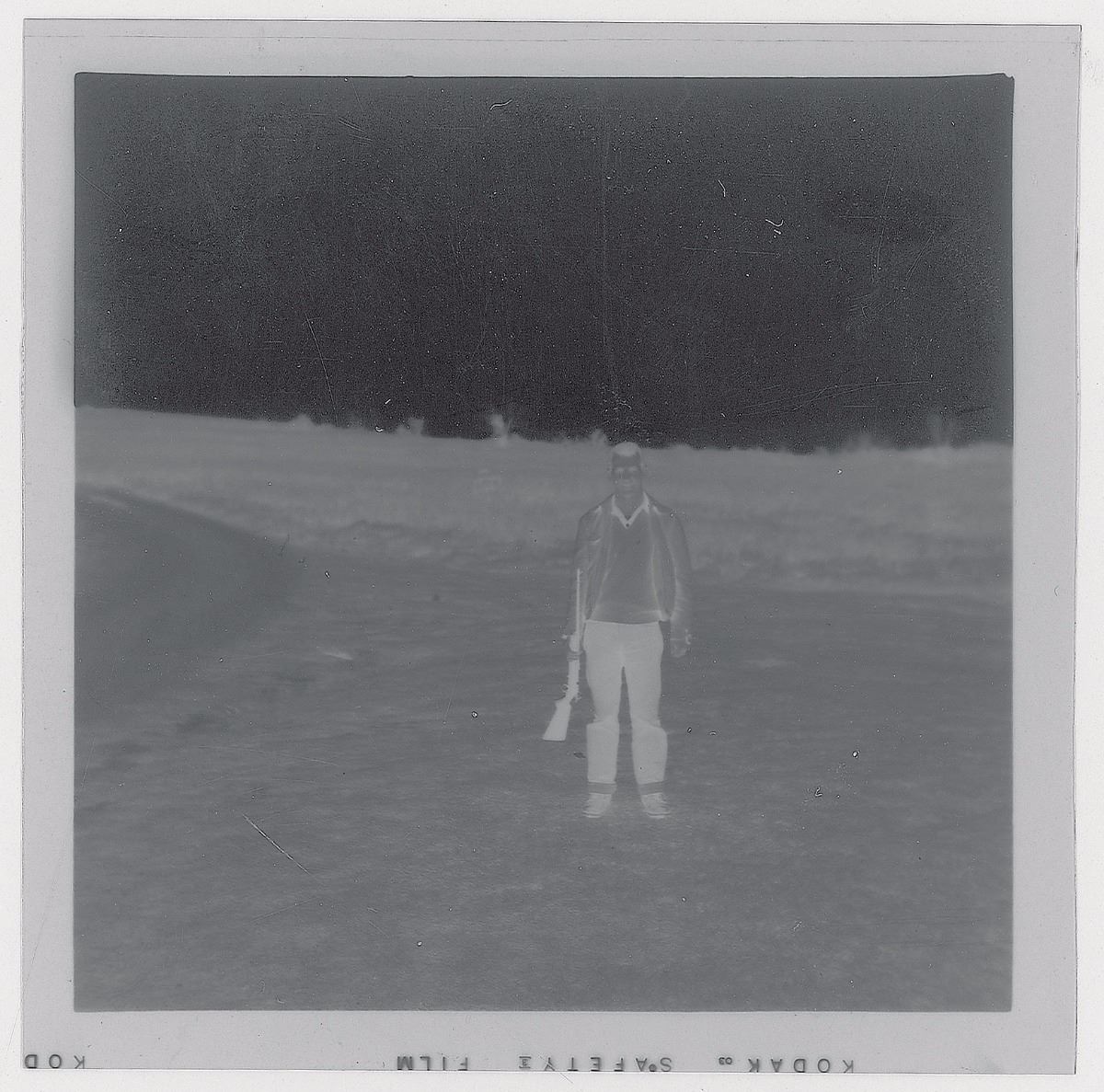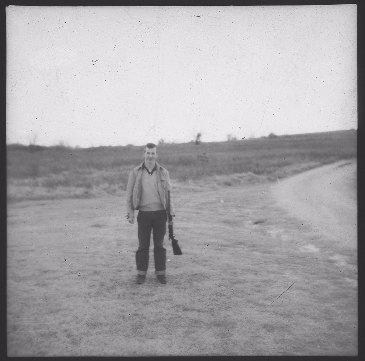 Two original 2.5 x 2.5 negatives of Lee Harvey Oswald, one showing him holding a rifle in an open field and the other showing him holding a baby. Includes modern prints of both images. In fine condition. Accompanied by a full letter of authenticity from John Reznikoff/University Archives stating that the lot was purchased directly from an Oswald family member.