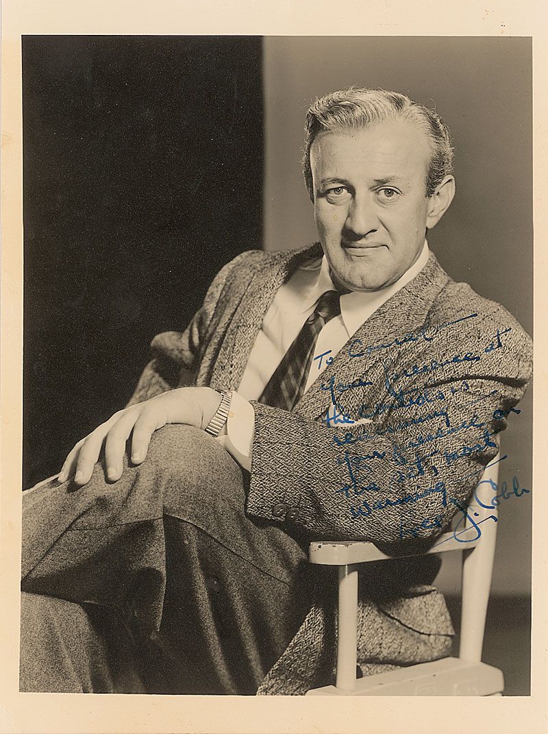 Vintage matte-finish 7.5 x 10 crystal-clear portrait of Cobb seated in a director’s chair, signed and inscribed in fountain pen, “To Conrad—Your presence at the controls is reassuring—your presence on the set, most warming—Lee J. Cobb.” In fine condition.