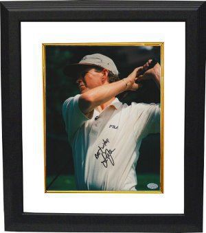 In 1989, Lee Janzen joined the PGA Tour. He has won eight times on the PGA Tour, most notably the 1993 and 1998 U.S. Opens. Lee Janzen has hand autographed this 8x10 Color Photo. Mounted Memories Hologram and Certificate of Authenticity. Custom White Mat and Premium Black Color Framed as shown.