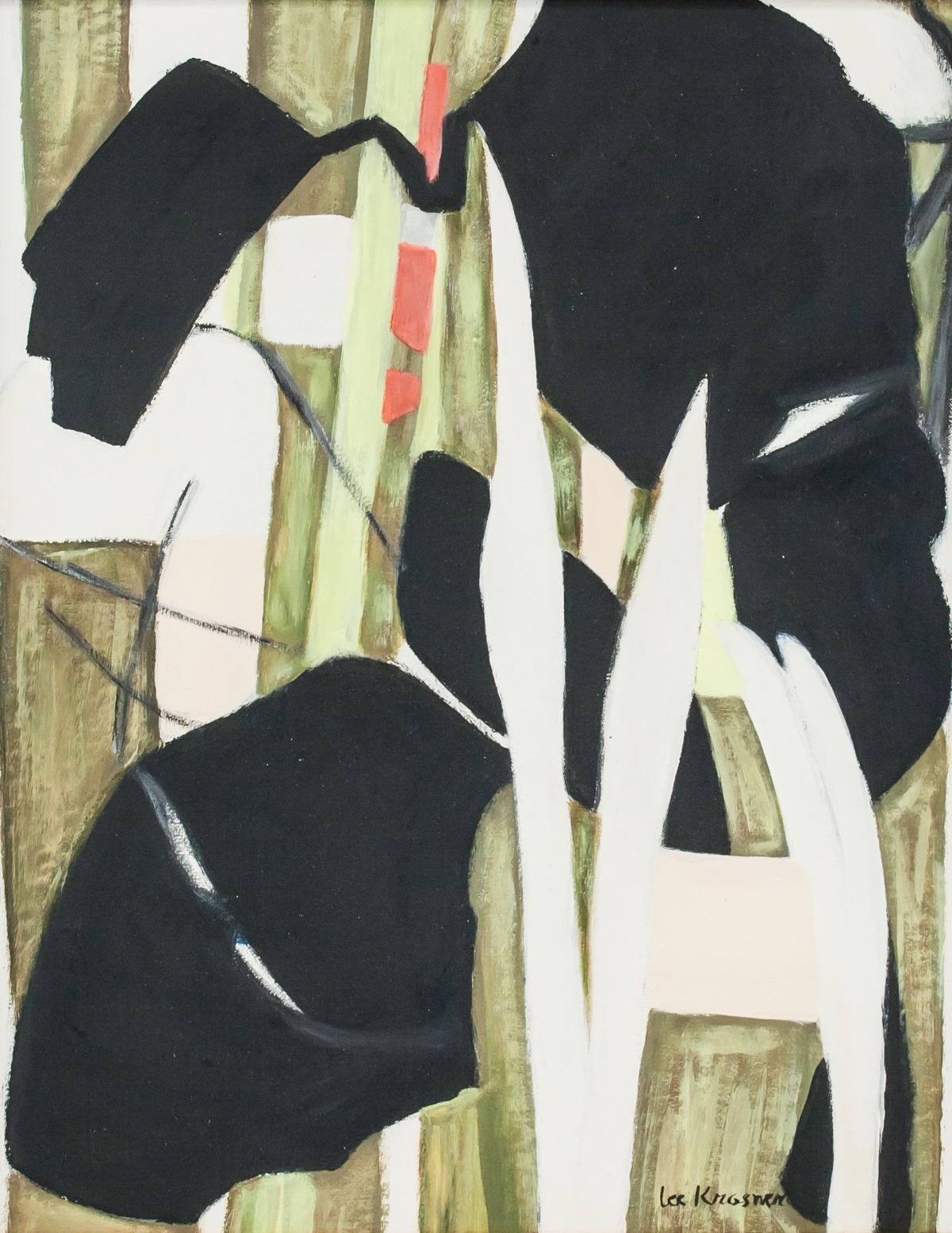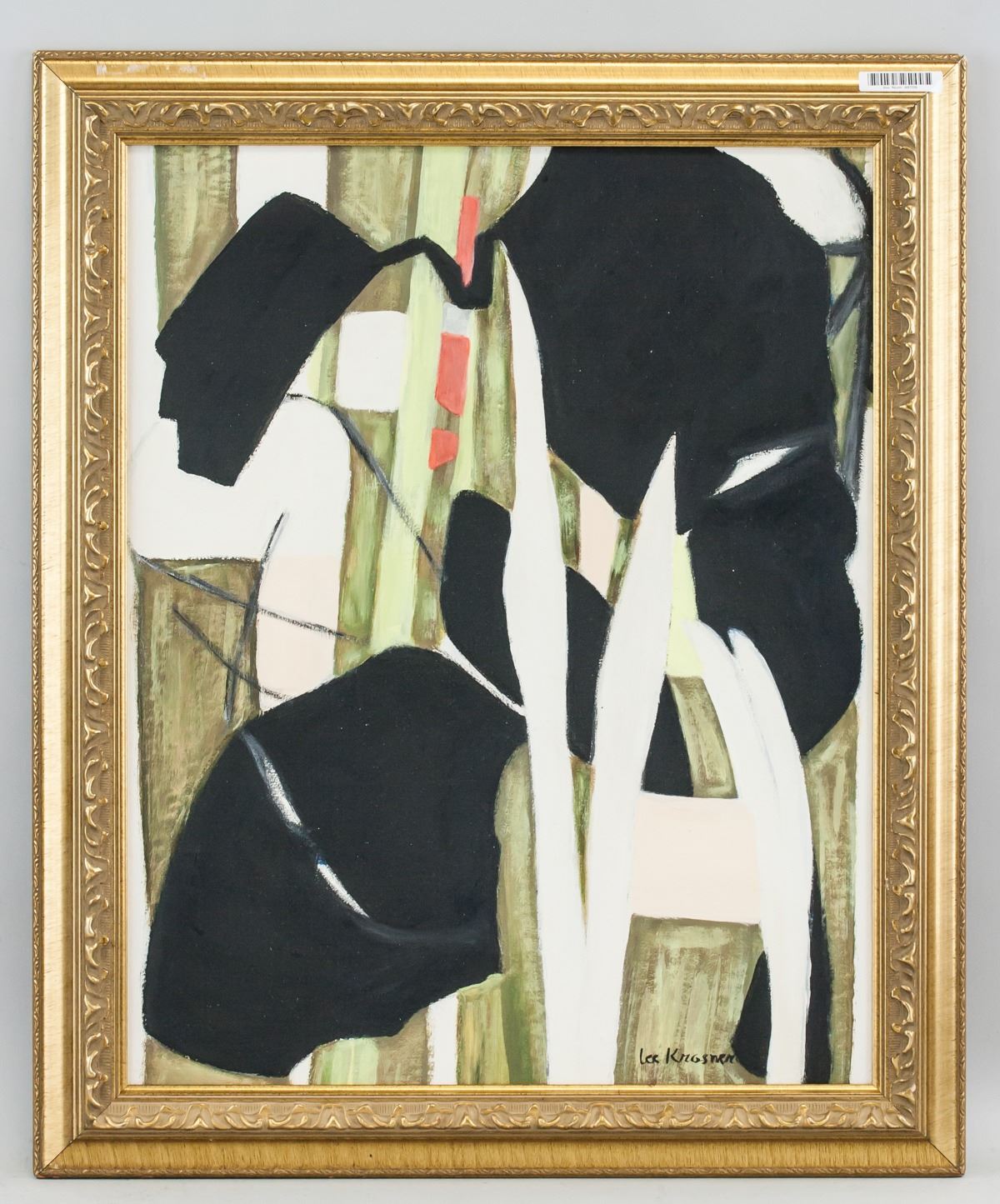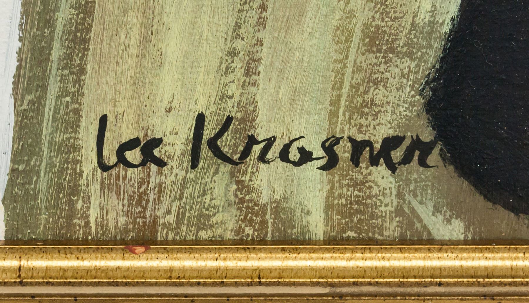 Oil on canvas, framed. Featuring an abstract expressionist composition. Signed Lee Krasner on the lower right corner. Attributed to Lee Krasner (1908-1984, American). 49 x 39 cm (19.25 x 15.25 in), Frame: 59.5 x 49.5 cm (23.5 x 19.25 in). PROVENANCE: This item has limited provenance from a Southern Ontario estate
