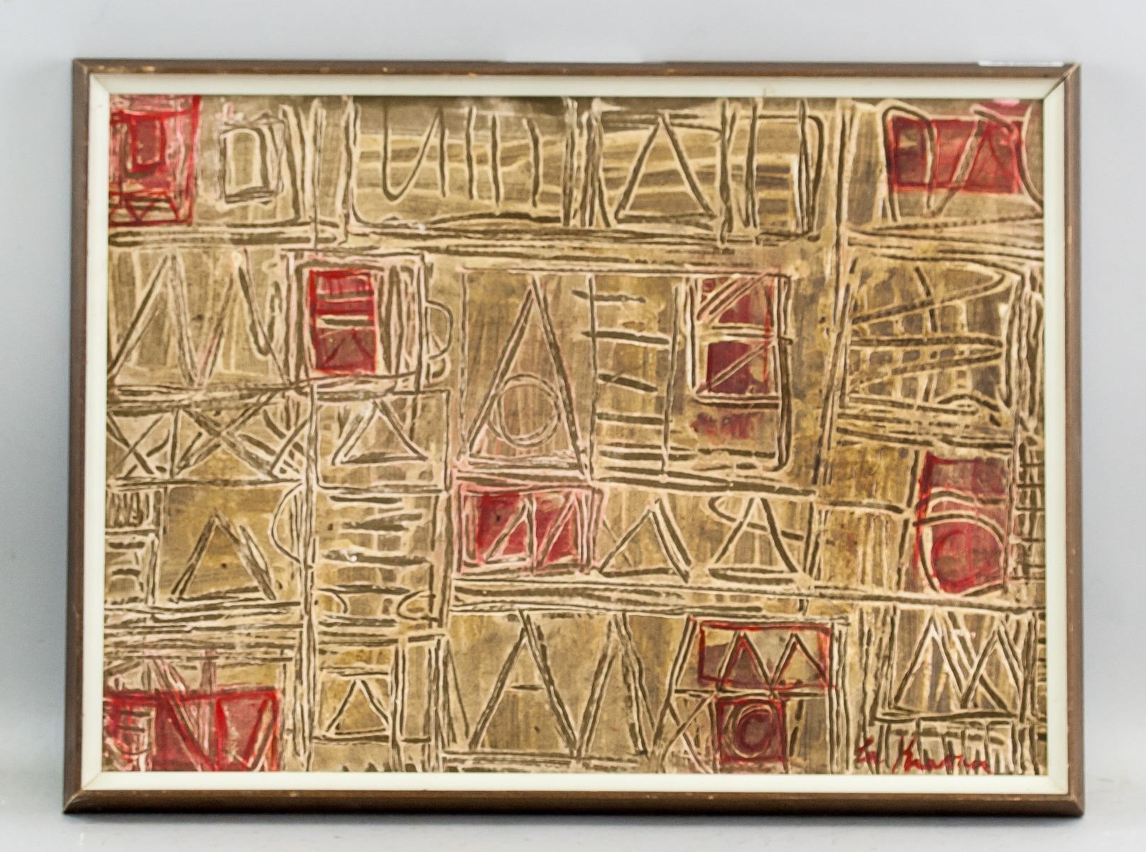 Oil on canvas, framed and stretched. Featuring an abstract expressionist composition. Signed Lee Krasner on the lower right corner. Attributed to Lee Krasner (1908-1984, American). 36 x 49.5 cm (14.1 x 19.5 inches). Frame size: 40 x 54 cm (15.7 x 21.3 inches). PROVENANCE: Southern Ontario estate