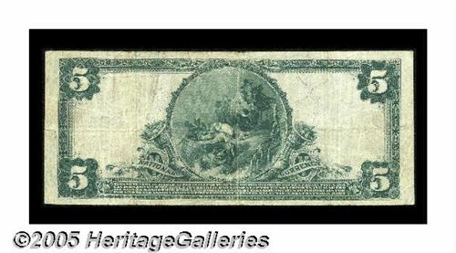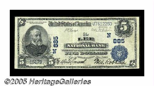 <B>Lee, MA</B></I> - $5 1902 Plain Back Fr. 598 <B>The Lee NB</B></I> Ch. # (N)885<BR>Well-balanced margins and dark signatures enhance this <B>Fine</B></I> $5 Plain Back. Our 2003 St. Louis Central States auction included an Extremely Fine $20 Plain Back from here which sold for $977.50. We expect this example to fetch about. . .