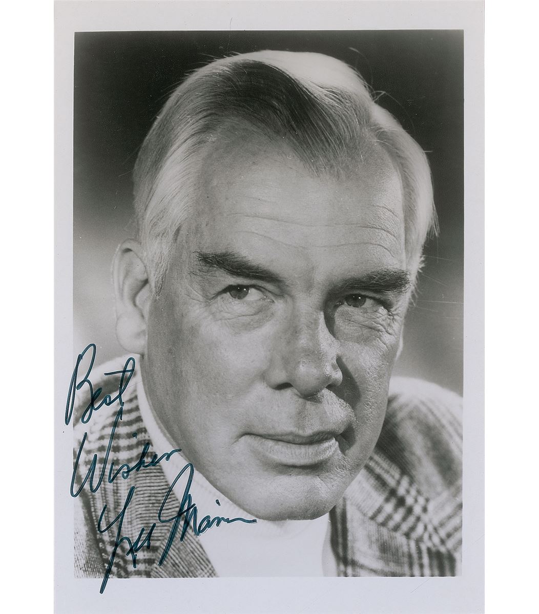 Glossy 5 x 7 close-up photo of a debonair Marvin, signed in black felt tip, “Best wishes, Lee Marvin.” In fine condition.