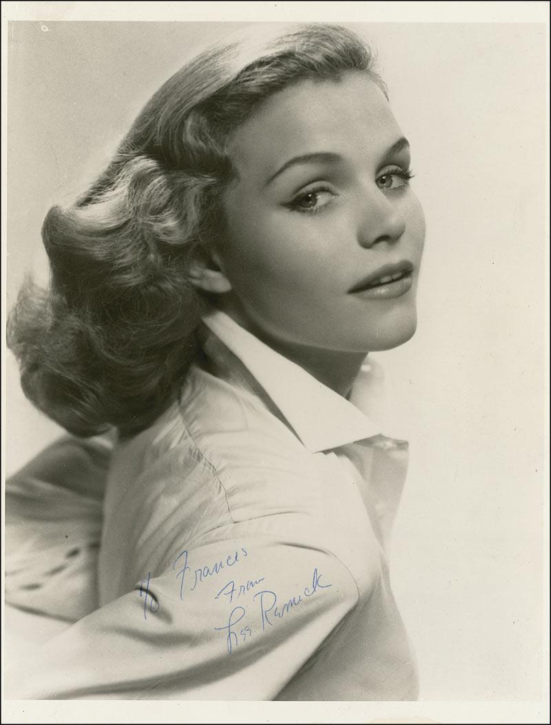 Vintage glossy 7.5 x 10 head-and-shoulders portrait, signed and inscribed in blue fountain pen, “To Francis From Lee Remick.” In fine condition, with scattered light creasing and lightly trimmed side edges. Pre-certified PSA/DNA and RRAuction COA.