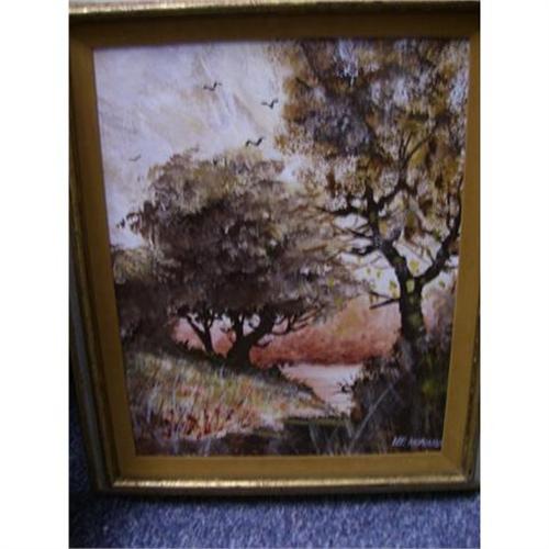 Lee Reynolds Fall scene with trees and a creek and birds. It is oil on canvas!