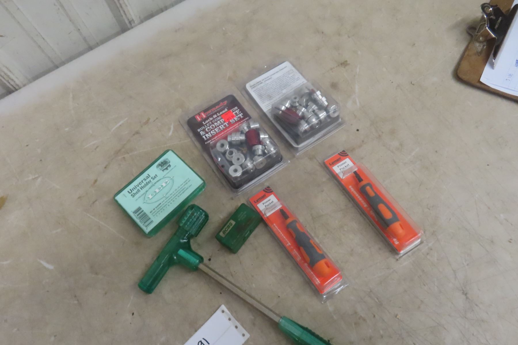 Lee Universal Shell Holder; Two Lyman Primer-pocket Cleaners; RCBS Tool; Hex Wrench; Hornady Lock-n-load Insert Set.