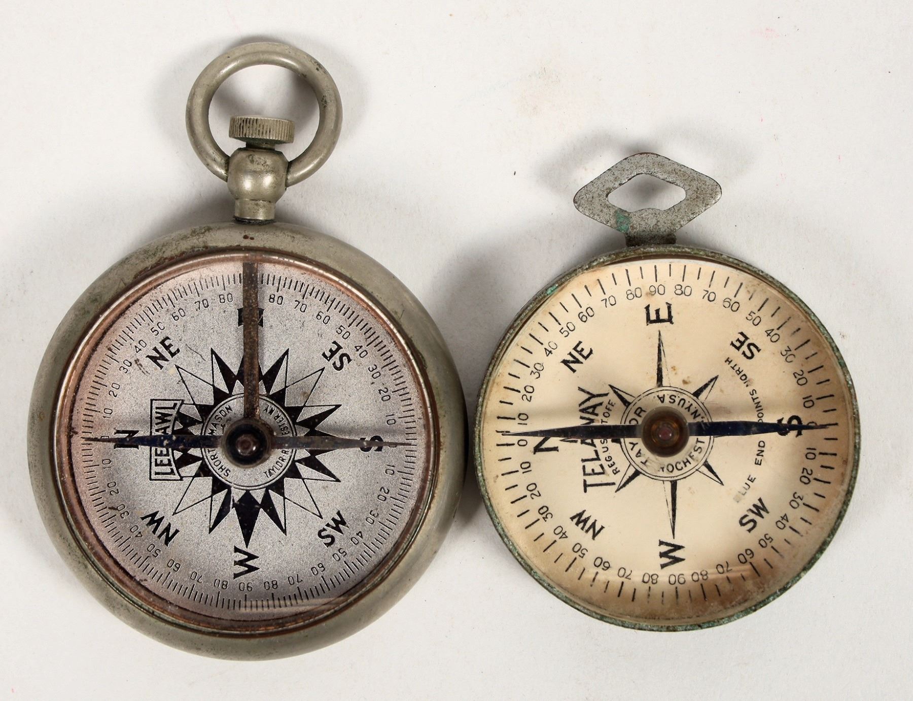 This group has a Leedawl compass made by Short & Mason (Taylor) and a Telway compass. Both compasses are built without covers and the Teleway has a cast metal base. Both appear to be made before WW2. C.1930's. Both have jeweled and fst needles. From the Popovich collection. Please see photos for details.