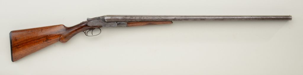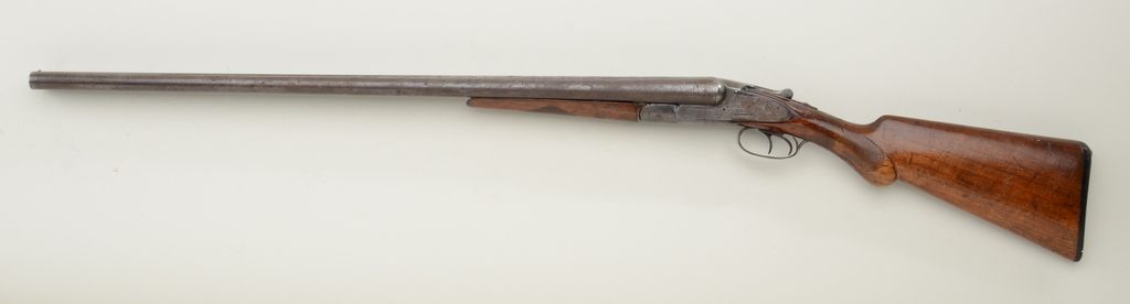Lefever Arms Co. SxS concealed hammers shotgun, 12 gauge, 30” barrels, blue and case hardened finish, checkered wood stocks, #49369. This gun is in overall fair condition showing scattered areas of erosion andsurface rust on the barrels, traces of case colors on the side plates of the receiver, overall good bores, actions need work, wood stocks show wear and scattered old mars and scratches from carry and storage. Est.:$100-$200.