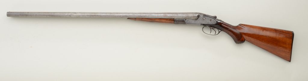 Lefever Arms Co. SxS concealed hammers shotgun, 12 gauge, 30” barrels with damascene patterns, case hardened receiver, cocking indicators, checkered wood butt stock, #32295. This gun is in overall good condition showing metal surfaces gone to a silvery toning, good bores, actions and markings; wood stocks are overall good showing wear and an old re-finish; replaced black checkered butt plate (Winchester). Est.: $200-$400.