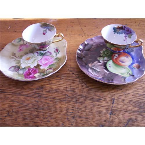 These are so pretty.Set of four luncheon sets with gorgeous flowers and gold trim.All in perfect condition.Plates measure 7 3/4" across.