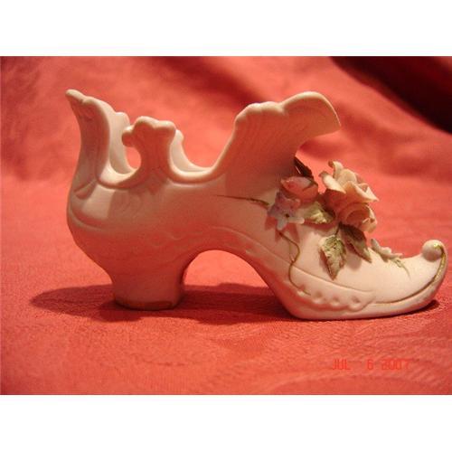This is the #1204 Lefton Pink Shoe. It is 4 1/2" long & is signed on the bottom with the Lefton logo & number. This adorable shoe has applied flowers, which are without damage. What a delightful addition to your shoe collection