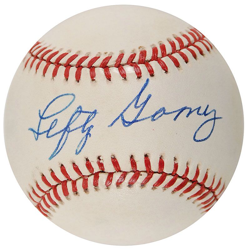 Official Rawlings American League baseball signed in blue ballpoint on the sweet spot. In fine condition.