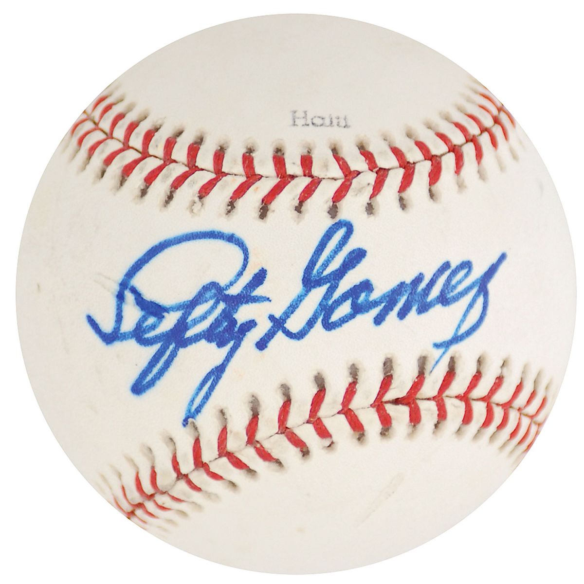 Unbranded baseball signed in blue felt tip on the sweet spot. Scattered surface marks and scuffs (one affecting the first letter of the signature), otherwise fine condition.