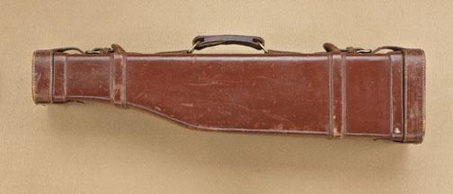 Leg of Mutton double carrying case for two shotguns with 28” barrels or shorter. Parkers fit nicely. Measures 6-1/2” wide by 32-7/16”. Well made, felt lined, good quality fittings and stitching. Good overall condition. Est: $100 - 300