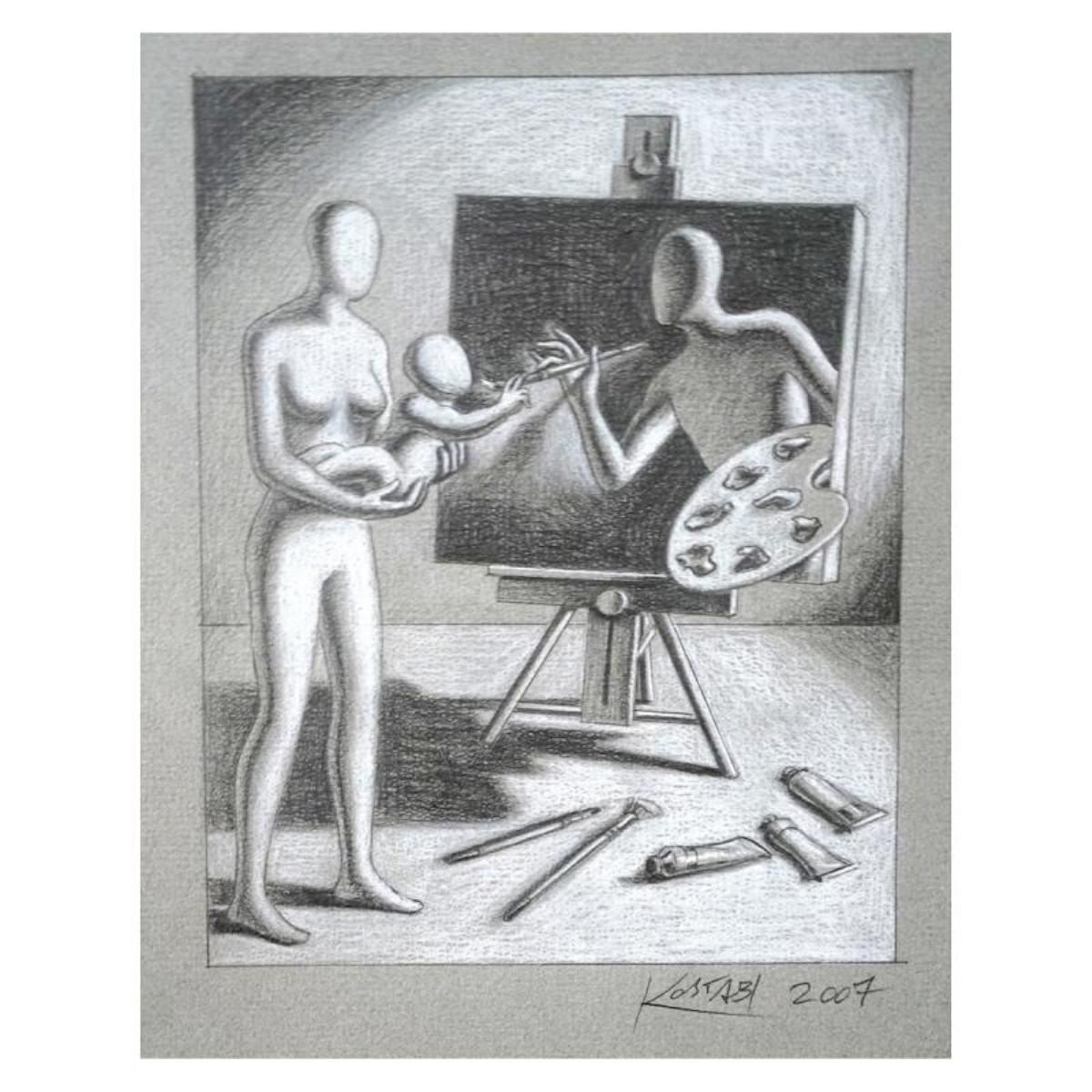 "Legacy" is an original artwork, pencil on paper, by Mark Kostabi. The piece is hand signed and comes with a certificate of authenticity. Measures approximately 12" x 8.5".
