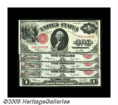 <B>Legal Tender Grouping,</B></I> including Fr. 39 <B>VF-XF;</B></I> Fr. 60 three closely numbered examples <B>XF;</B></I> all with corner rounding and/or trauma; and Fr. 40 <B>XF.</B></I><BR>