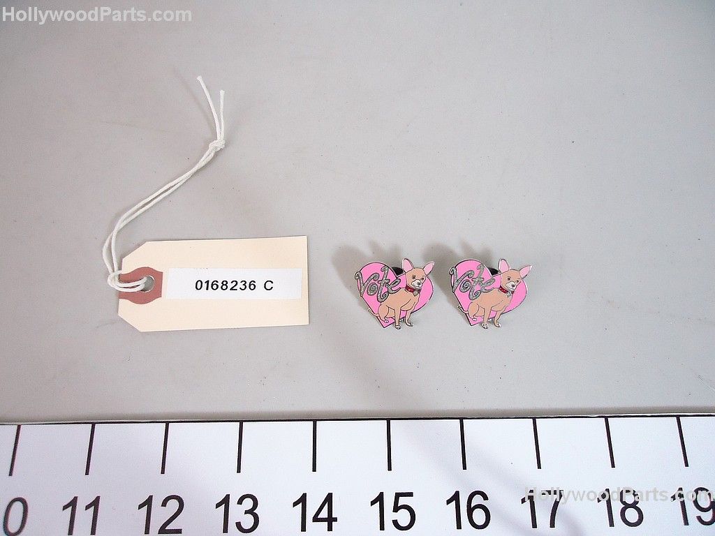 Set of 2 heart shaped pink "VOTE" pins with Bruiser.