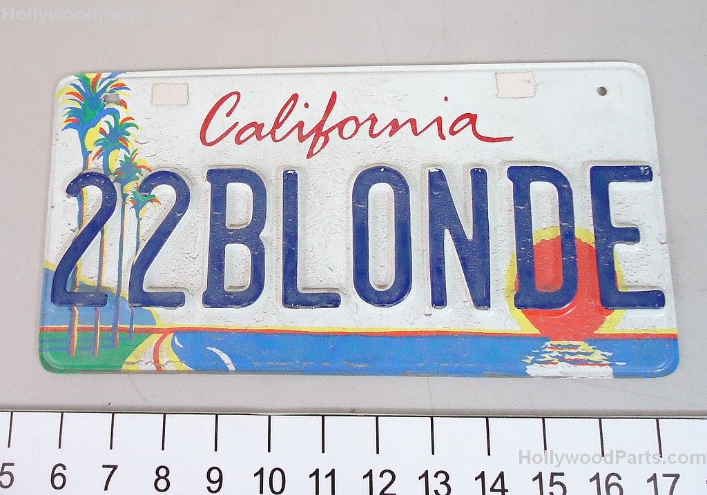 Screen used vanity California license plate that reads, "22BLONDE". Seen on Elle's convertible in Legally Blonde.