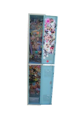 This is a large size prop locker from the 2001 romantic-comedy 'Legally Blonde.' The prop is made from thin steel and is comprised of two lockers, with an upper and lower compartment and is painted powder blue. The insides are covered with photos and stickers that would be seen in any high school locker. For fans of the film, this is a fun piece. From the MGM studios. Oversized item. Additional Postage Required.