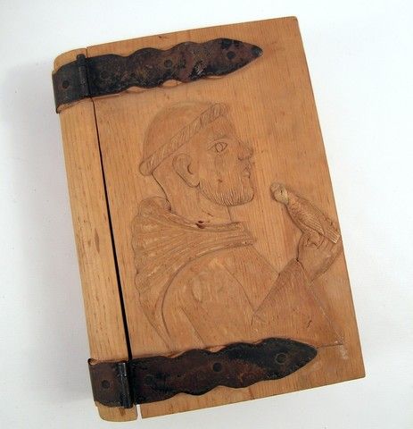 Legend Of Zorro Prayer Box Prop - From the 2005, "The Legend of Zorro" with the one actor who was born to play the part, Antonio Banderas comes this authentic wood "prayer box" with a carved Benedictine Monk on the lid used in the production. (Approx. 13" x 9 1/2").