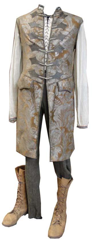 Intricately detailed ''Hero'' costume from the hit ABC television series, ''Legend of the Seeker.'' Costume was worn by actor Ted Raimi, who played ''Sebastian'' on episodes 103 and 212, which aired on 8 November 2008 and 20 February 2010. Costume includes: (1) printed heavy velvet-flocked waistcoat, (2) striped silk/cotton shirt, (3) textured cotton/ linen pants, (4) brown leather laced boots, size 11. With a COA from the ''Legend of the Seeker'' costume designer. Near fine condition.