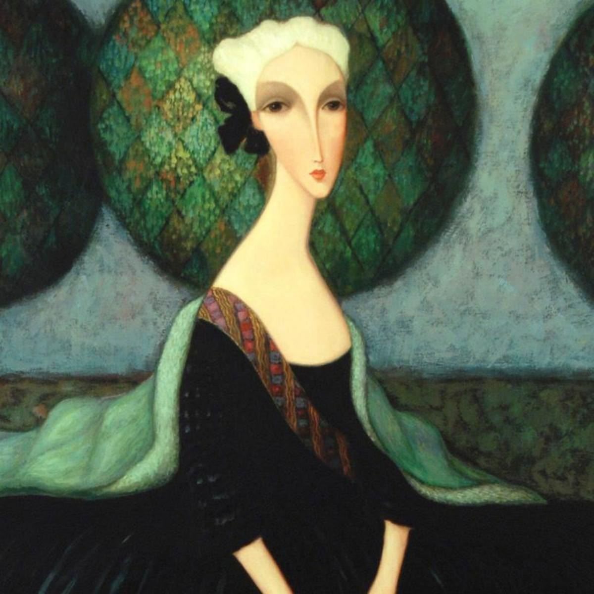 Combining time-honored religious icon painting with western style portraiture, the hauntingly beautiful art of Sergey Smirnov (1953-2006) is inspired by the 'Parsuna' art movement. "Catherine The Great" is a limited edition mixed media on canvas, printed in 2003, numbered and hand signed by the artist. Includes Certificate of Authenticity! Measures approx. 32" x 40" (image). Reference #: 197173.