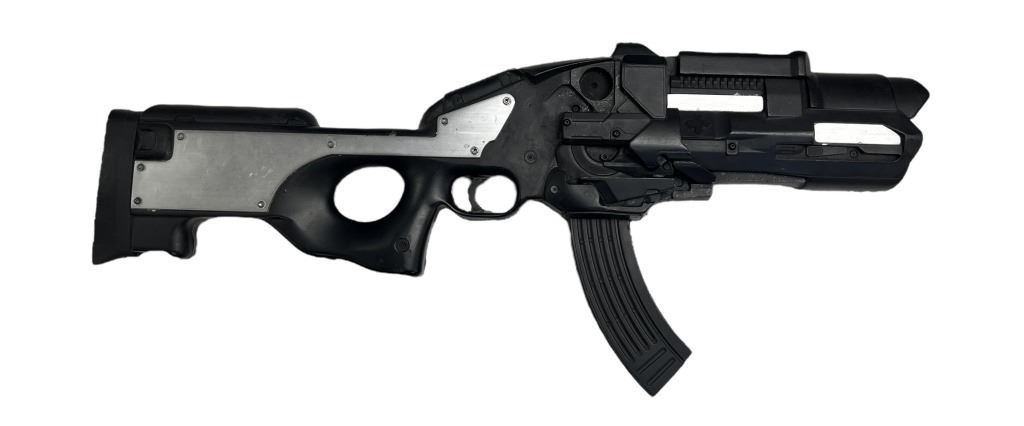 Original Sci-Fi rifle weapon used in multiple episodes of the time travel superhero television show 'Legends of Tomorrow' (2016-2022), where time-traveling rogue Rip Hunter must recruit a ragtag team of heroes and villains to help prevent an apocalypse that could impact not only Earth, but all of time.
