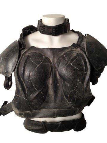 Gabriel (Kevin Durand) screen used, stunt costume pieces. Includes dark grey distressed chest plate, back plate and shoulder armor piece, grey rubber collar, elbow armor, wrist wraps, belt, and knee high boots. (Kevin written inside)