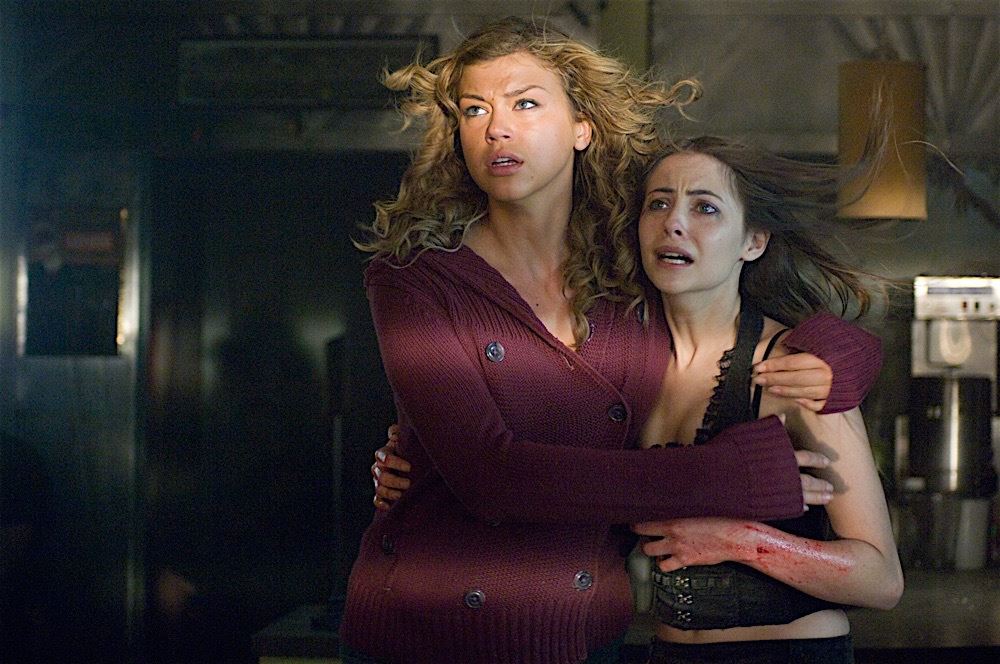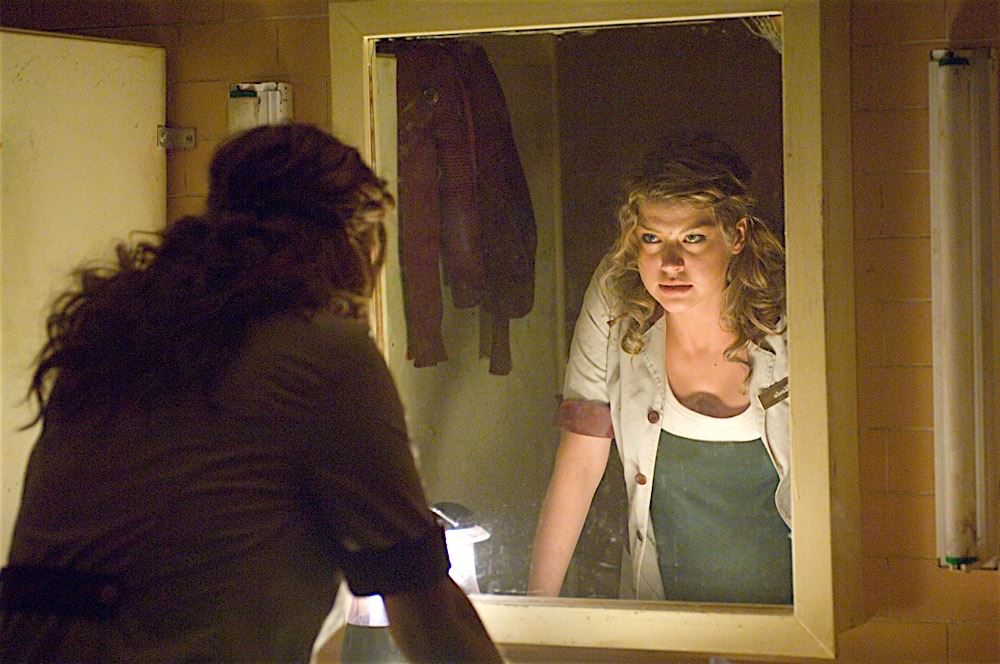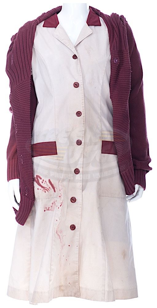 (Screen Gems, 2010) This outfit was acquired by the production for use by Adrianne Palicki as "Charlie". The outfit consists of a knit hooded jacket, an off white diner uniform with red accents, white tank top and thin green dress. The outfit is distressed for filming and has some studio blood applied. A production used costume tag is included that details the cut on the green dress and scene number used.