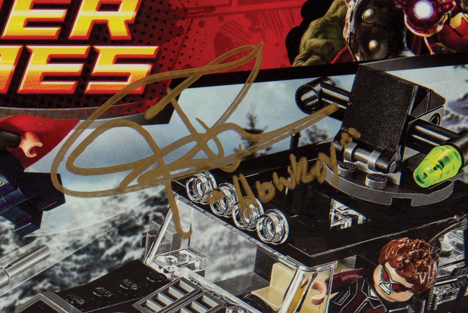 (Marvel, 2015) A rare unopened retired Lego boxed set titled Avengers Hydra Showdown. Depicting characters and scenes based on Avengers: Age of Ultron, the set has been signed on the front of the box by Hawkeye actor Jeremy Renner. The signature has been authenticated by Beckett Authentication Services, and the box has a unique Beckett authentication code applied over the barcode. The box measures 7.5"x10.25" and 2.5" thick and is in very good condition with minor shelf wear.