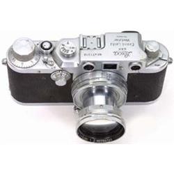 Leitz, Wetzlar, Nr. 471.310, mit versenkbarem Summitar 2/5 cm, Nr. 784.166. Schönes Objektiv, Gehäuse mit normalen Gebrauchsspuren. Objektivdeckel und Bereitschaftstasche. Postwar "Leica IIIc" with collapsible Summitar lens. With lens cap and case. - (3/3) - € 500/650 - (62/15)