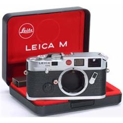 Leitz, Wetzlar, Nr. 1.706.191, altes Logo, Chrom, Gehäusedeckel, Trageriemen, Verkaufsschatulle, Umverpackung. Leica M6, silver chrome, with "Leitz" logo, body cap, strap, originally boxed. - (2/2+) - € 1.200/1.500 - (148/141)