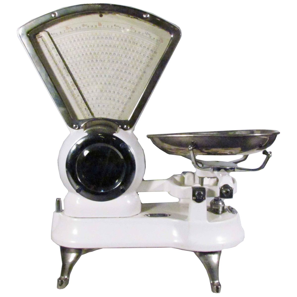 Leicester Candy Scale. White porcelain. Excellent all original condition. 20 X 21 X 9 inches.