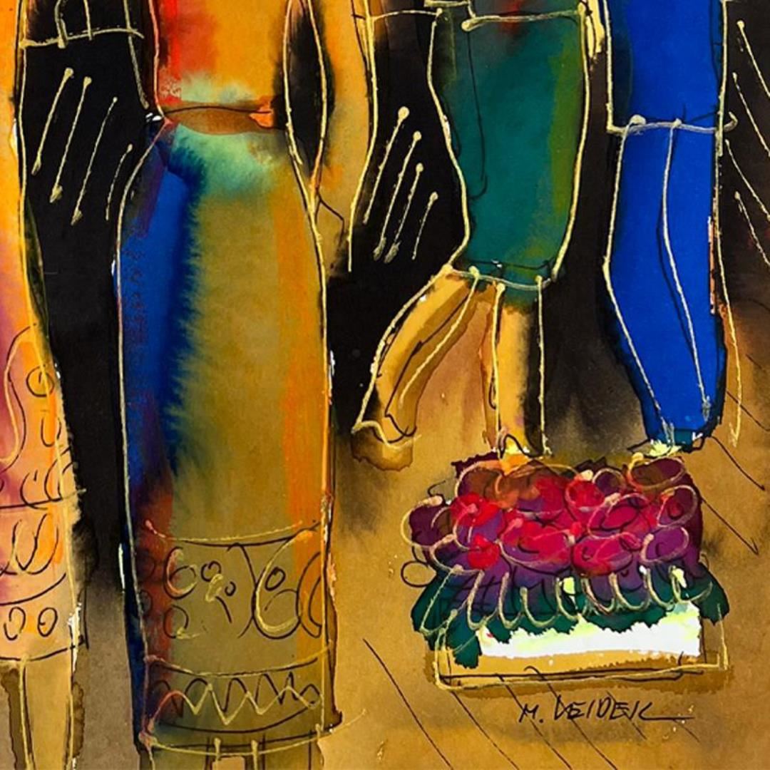 This is an original mixed media watercolor painting on paper by Moshe Leider. Hand signed by the artist, this piece comes custom framed and includes a Letter of Authenticity. Measures approximately 18.5" x 16" (frame), 13" x 9" (image).
