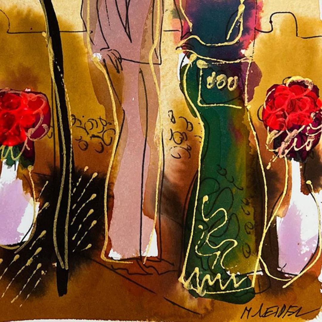 This is an original mixed media watercolor painting on paper by Moshe Leider. Hand signed by the artist, this piece comes custom framed and includes a Letter of Authenticity. Measures approximately 15" x 13.5" (frame), 8" x 6.5" (image).