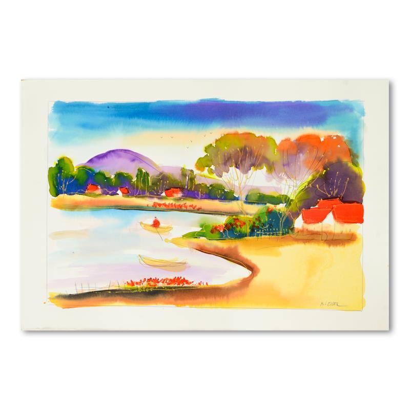 This is an original watercolor painting on paper by Moshe Leider, hand signed by the artist. Includes Letter of Authenticity. Measures approx. 22" x 15" (border), 19" x 12" (image).