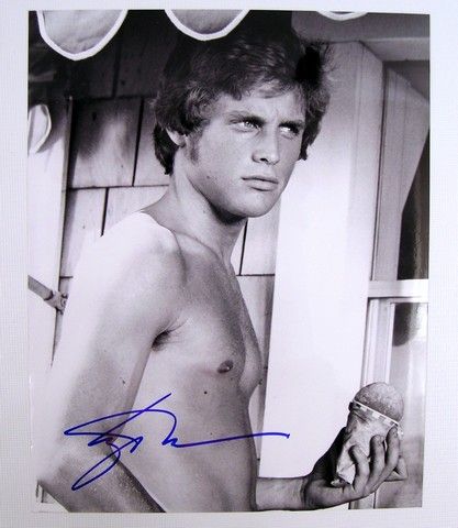 Classically trained actor Leigh McCloskey is best known for his "heart throb" reoccurring roles on such Soap Operas as "One Life To Live", "General Hospital", "Santa Barbara", and recently as Dr. Kurt Costner on "The Young and the Restless". This is an early PR photo of a shirtless Leigh, signed by him. B&W 8"x10".