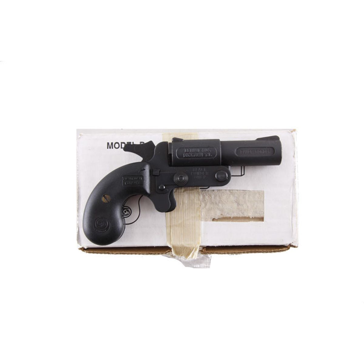 Condition: NSN:NVSN, Modern single shot top break percussion pistol for black powder only. Matte black finish, black plastic grips, 3 3/8" barrel with fixed sights, good bore and action. Included in original box.Condition: Near new with no sign of use.