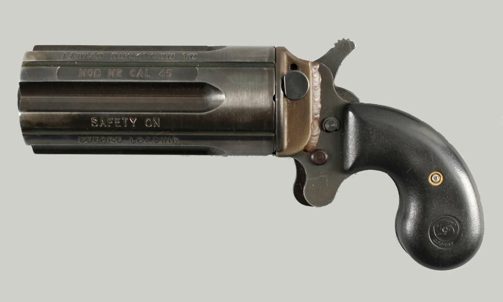 Leinad Mdl MR Cal .45LC SN:103052Rotating barrel 5 shot pepperbox chambered in .45 LC, blued finish