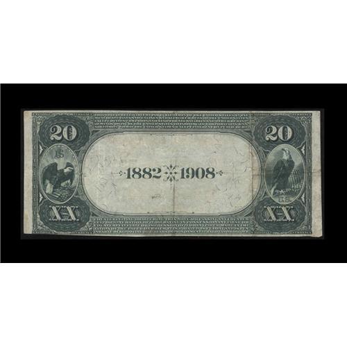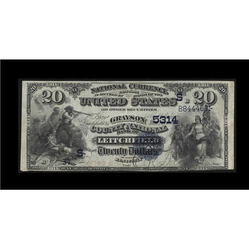 <B>Leitchfield, KY</B></I> - $20 1882 Date Back Fr. 555 <B>The Grayson County NB</B></I> Ch. # (S)5314<BR>This bank issued just 913 sheets of Date Backs before it disappeared in 1911, with just one survivor recorded in the Kelly census. Fortunately, it is a very high grade example, and fortunately, it appears here as part of the Gale holdings. <B>Very Fine-Extremely Fine,</B></I> with the bottom margin just a bit tight.
