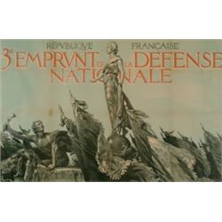 REPUBLIQUE FRANCAIS 3E EMPRUNT DE LA DEFENSE NATIONALE, a colour lithograph poster printed by Draeger in 1917. Condition B- with minor paper loss at folds and archivally rolled on linen. Framed.