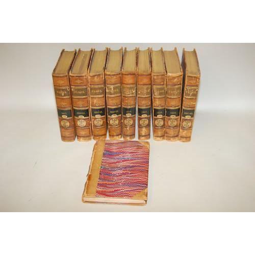 Lemaire, M. Ch. / Scheidweiler, M. / Van Houtte, M.L.. Flore Des Serres Et Des Jardins De L'Europe.....10 Volumes. A Gand: Louis Van Houtte, 4to - over 9¾" - 12" tall. Hard Cover. Ex-Library. Good Condition. 1845, 1847, 1850-51, 1851-52, 1852-53, 1856, 1857, 1858, 1859, 1867-68. BOTANICAL CHROMOLITHOGRAPHS THROUGHOUT (mostly finished by hand) as follows: 703 full page chromos, 158 double page chromos, 3 folding chromos, 3 folding tinted lithographs, 19 full page tinted lithographs, 37 b/w plates, plus 3 chromos that are cut, for A TOTAL OF 926 PLATES, most with tissue guards, with numerous text illustrations throughout. Bound in 3/4 leather & marbled paper, marbled endpapers, raised bands on spines, leather spine labels, top edges gilt. Covers have moderate wear, lacks one back cover, a few pages detached, plates are generally bright & clean (with occasional light foxing on a few plates). Text in French. NO OBVIOUS LIBRARY MARKS ON PLATES.
