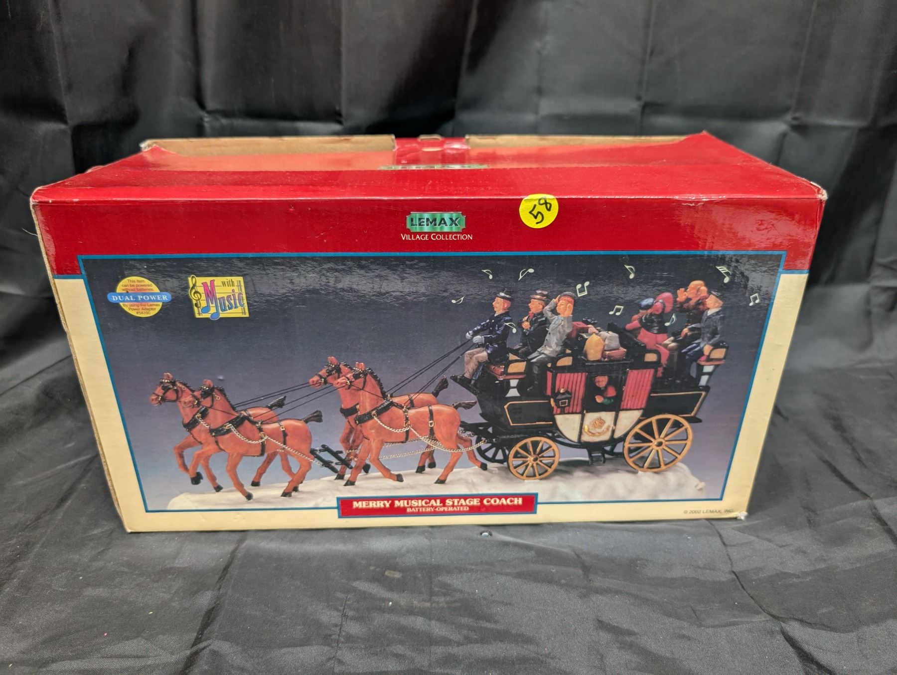Lemax Village Collection Merry Musical Stage Coach (Some damage to Areas) W/ Original Box