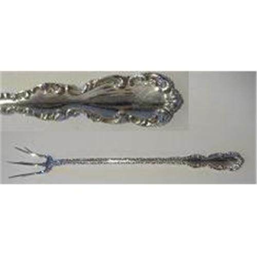 This is a pristine example of antique Gorham sterling silver. This is a Strasbourg Lemon Fork with all correct markings and in mint condition. No monogramming. 4 3/8" long