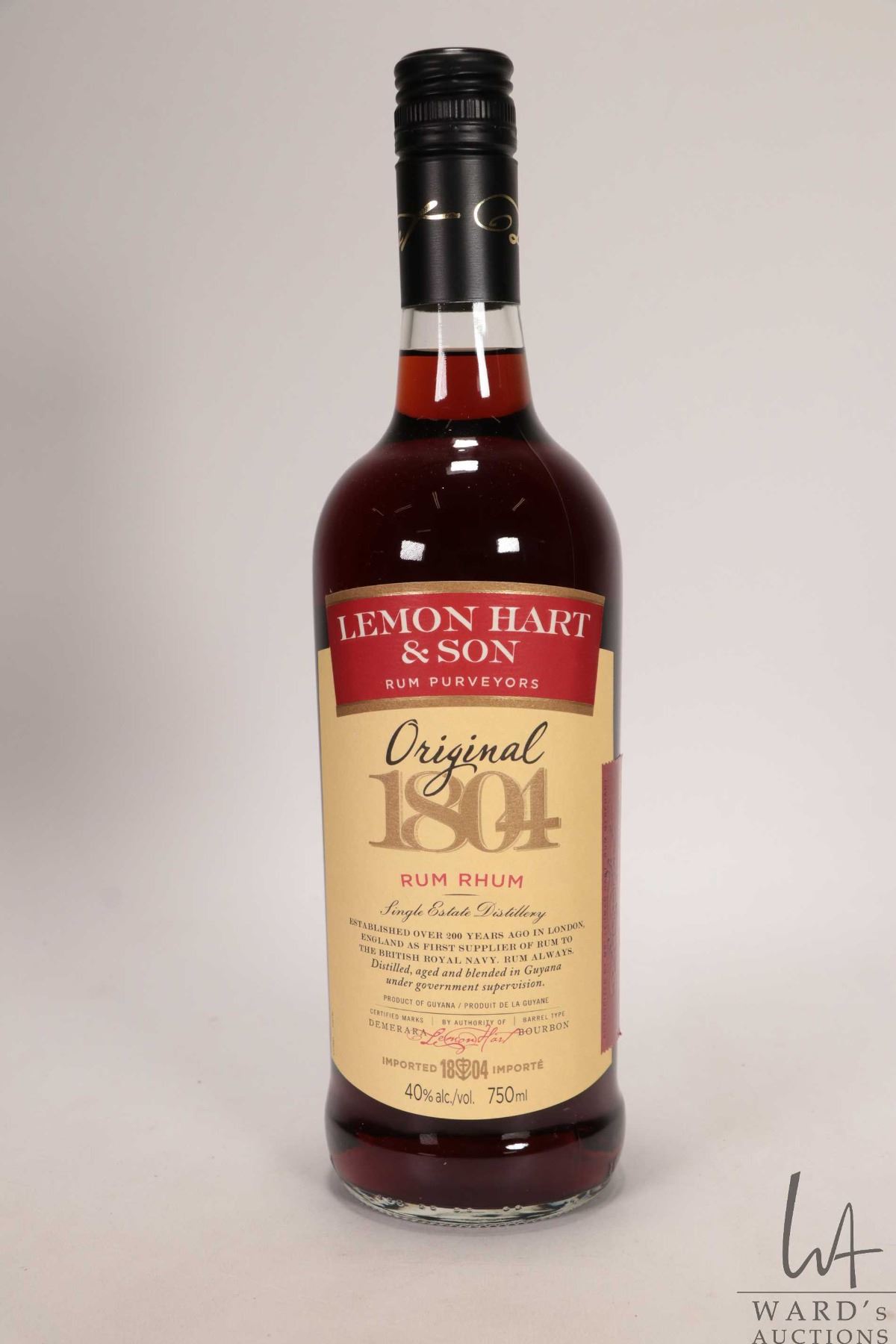 Lemon Hart & Son/ 1804 Rum/ 750m/ 40% ABV Note: Alcohol cannot be insured by any courier in Canada. Local pick up is recommended. Canadian bidders only.