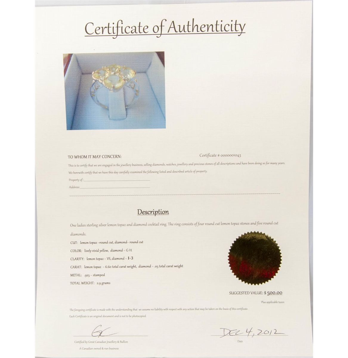 includes 500 certificate