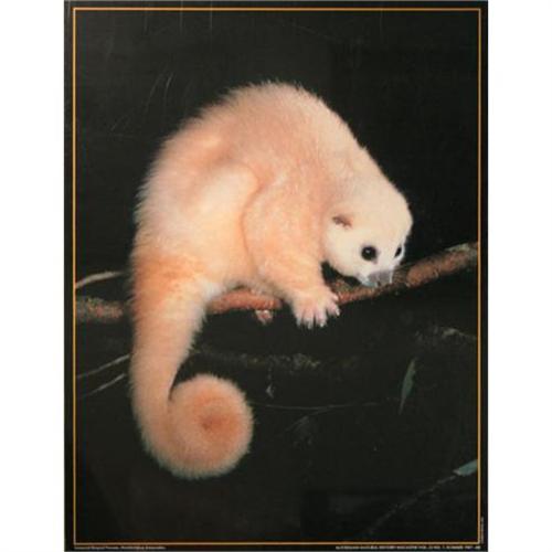 This is a beautiful photograph poster of a Lemuroid Ringtail Possum. The rare white variety of this marsupial is indigenous to areas of Australia. This poster measures 16 ¾? x 22? and is sealed in plastic with cardboard for stability. The photo is credited to Andrew Dennis. It is a wonderful piece of wildlife photography perfect for the animal lover in your family.