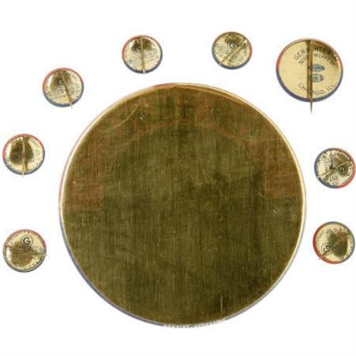 <B>Len Small: Lot of Illinois Len Small for Governor Pins</B></I>. This is a group of nine Len Small for Governor pins from Illinois. A 4” lithograph in fine condition, a 1 ¼” pinback and 7 distinct ¾” picture pins.<BR><BR><b>Shipping:</b> Miscellaneous Collectibles, Smal (<a target="_blank" href="http://www.heritageauctions.com/common/shipping.php">view shipping information</a>)