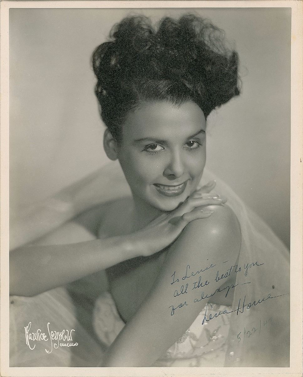 Attractive vintage matte-finish 8 x 10 portrait of Horne by Maurice Seymour, signed and inscribed in fountain pen, “To Lenie—all the best to you for always—Lena Horne.” In fine condition, with collector’s date notation of May 22, 1947.